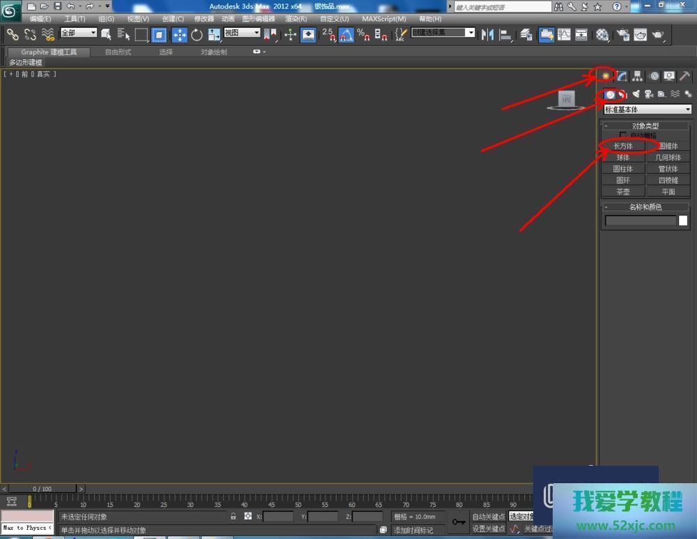 手腕/办法第1步掀开3Dmax2012软件,点击【创修】-【几何体】-【长方体】,正在作图区域绘制一个长方体模子。点击【创修】-【图形】-【文本】,完毕字体片面的创制,接着完毕饰品模子的创制(如图所示);
