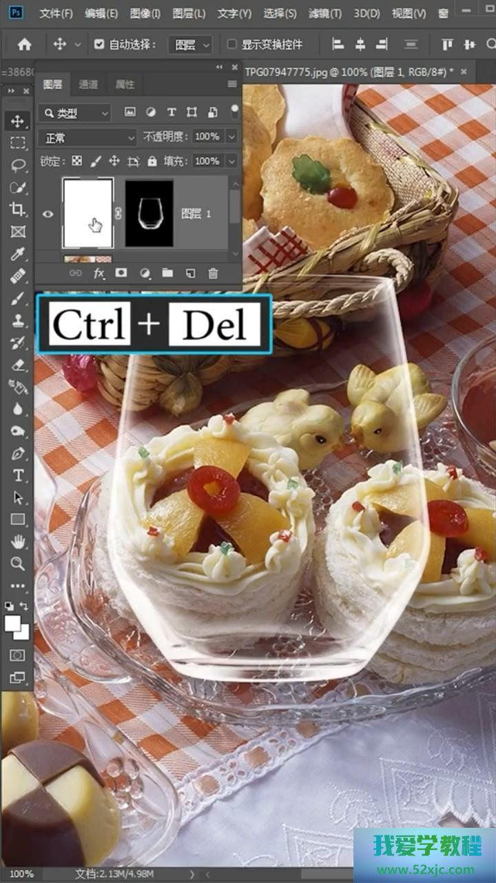 然后回到原图,按Ctrl+Del,填充白色,即可实行。