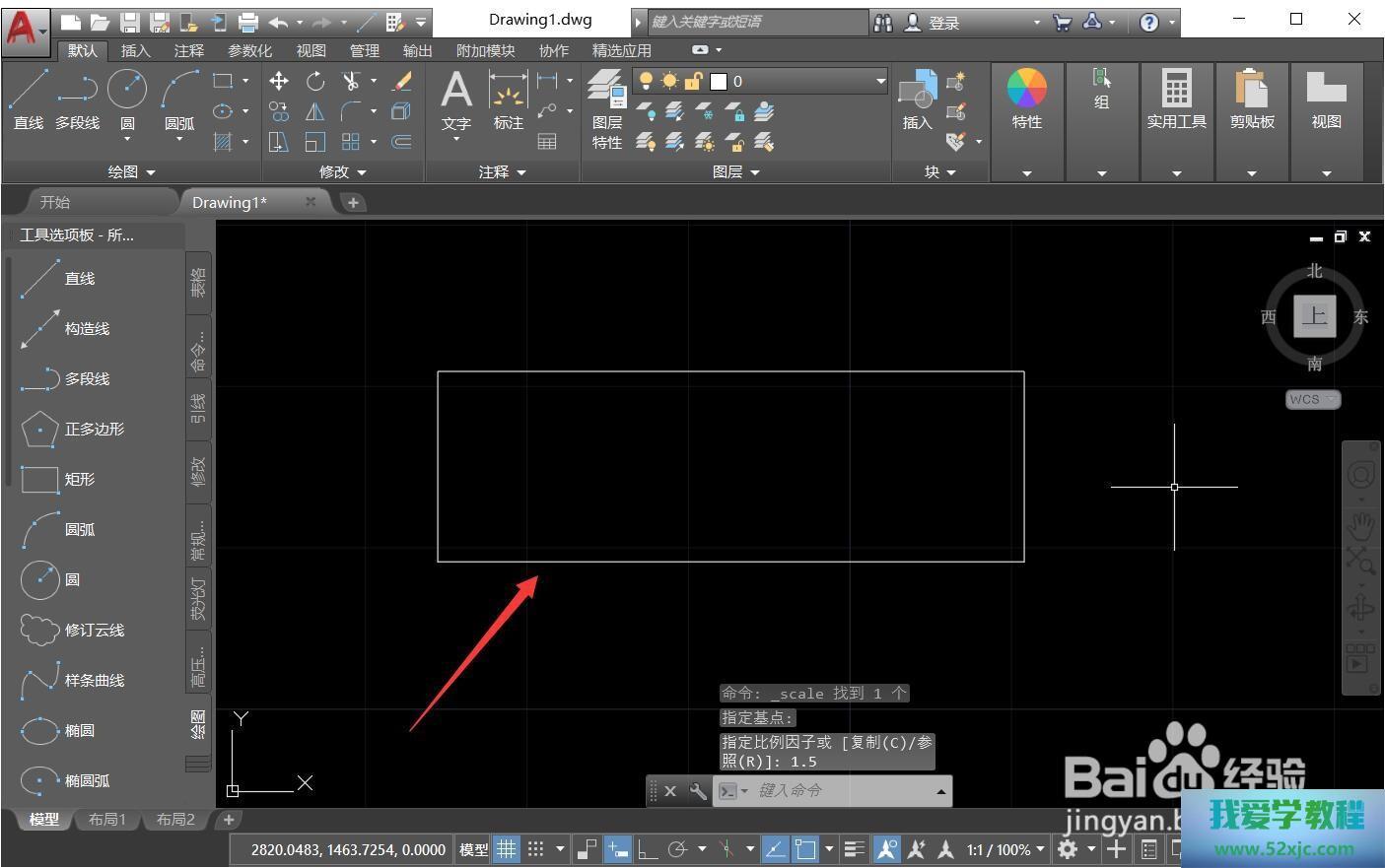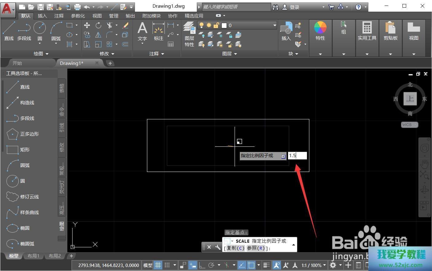 指定缩放的基点,以几何核心为例,配置缩放的比例因子,比方1.5。