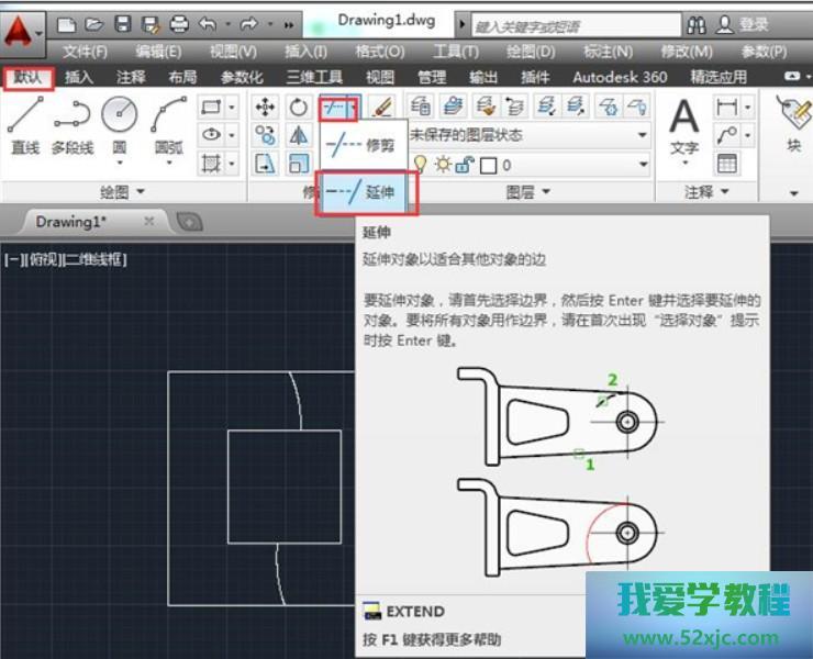 翻开AutoCAD 2014,正在cad画图面板中应用【默认】》【画图】中的东西绘制好图形如下。