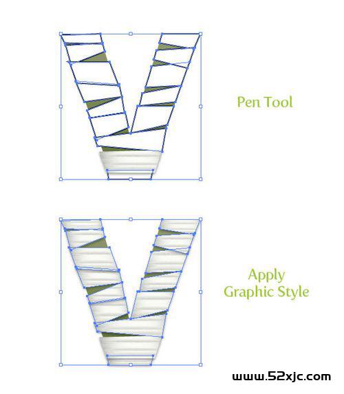 9、创制其他纠缠正在文字上的布料。提防下每块布料的闭联,对布料的纹理目标遵照其纠缠走向举行安排,将安排灰、白相隔为六块的渐变,修树其倾斜目标,如许技能让每块布料看起来加倍自然。