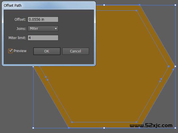 将内六边形复制(Ctrl-C)粘贴(Ctrl-V)一份,将填充色设为空,用R=153G=102B=51的颜色0.25磅的线条描边。