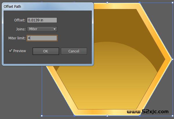 用钢笔器材(P),画一个与内六角重叠的八边形。操纵与第四步相像的渐变。将统统的放到一个分组内(Ctrl-G)。