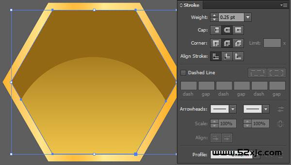 内六角屈曲4px,操纵颜色R=255G=204B=102不透后度100%到0%的线性渐变。筑立粗细为0.5pt,颜色R=102G=51B=0描边。