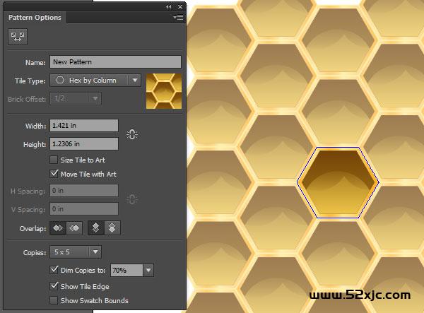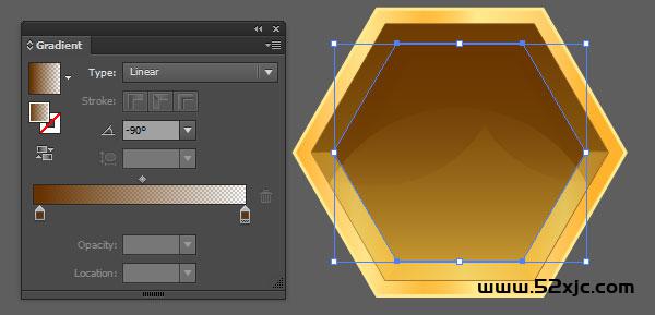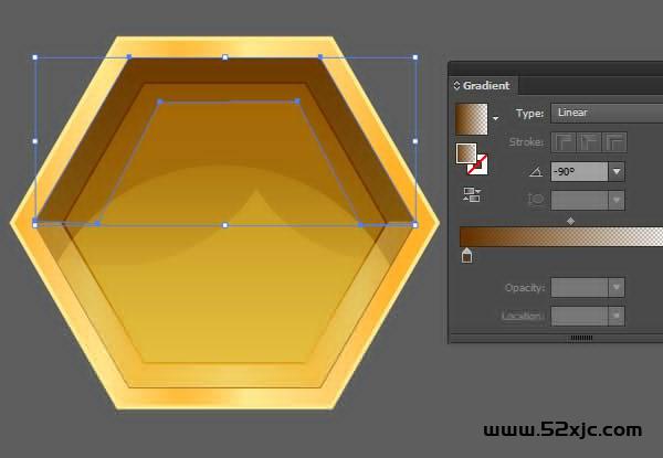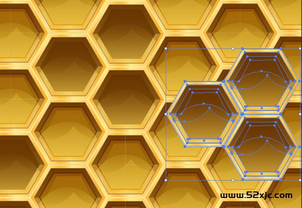 将少许洞造成空的且没有蜂蜜(或小虫)。复制粘贴暗黄色内六角形并删除少许明亮的渐变式样。将中央的六角形操纵第二个人第四步相像的棕色渐变。将这些六边形归为一个组。