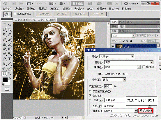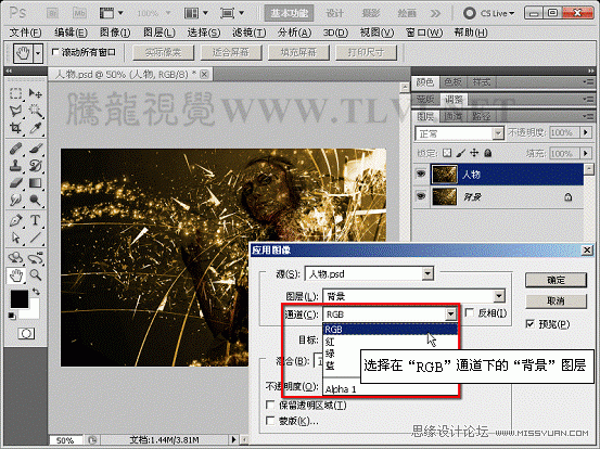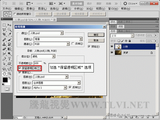 (2)奉行图像→使用图像号召,掀开使用图像对线)正在对话框入选择需求与人物图层相夹杂的图层。