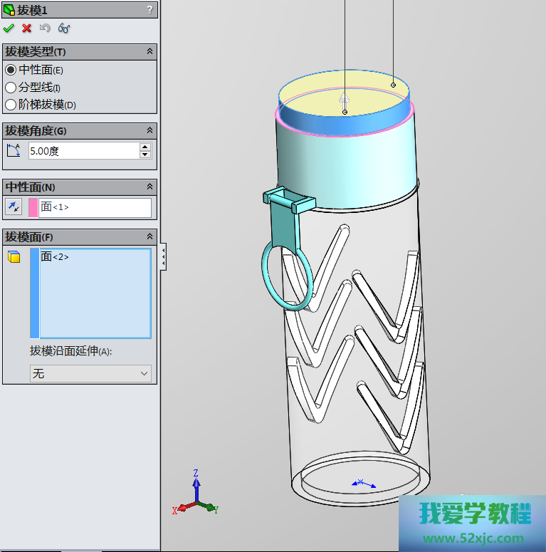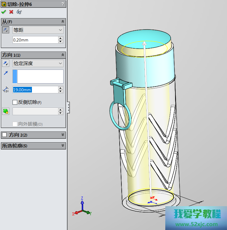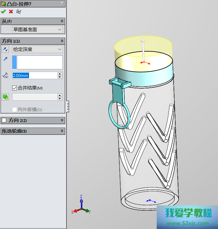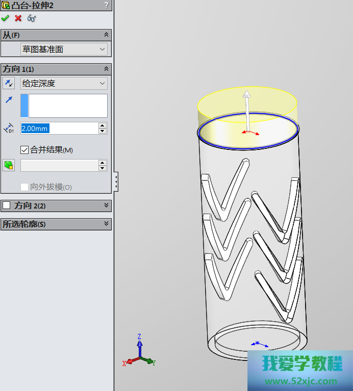 然后操纵切除-拉伸3性能,画出如下图所示的图形: