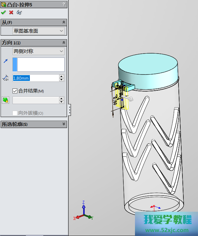 然后操纵凸台-拉伸5性能,画出如下图所示的图形: