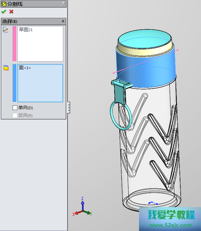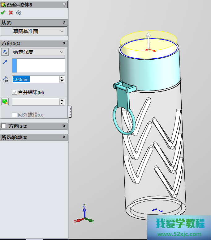 然后操纵切除-拉伸1性能,画出如下图所示的图形: