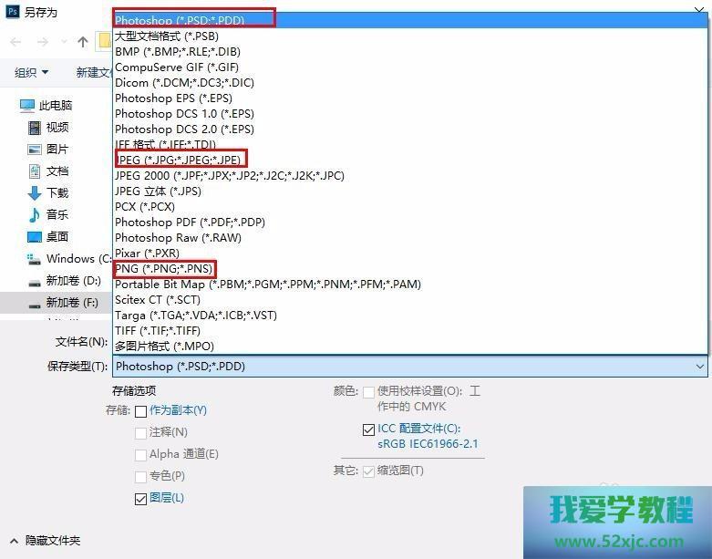 1.点击文献里的存储,展现对话框,大凡遴选PSD/JPEG/PNG