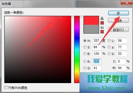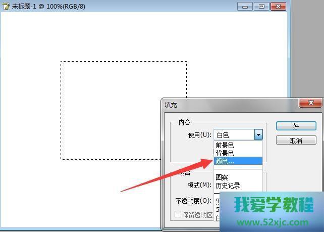 正在【拾色器】里拔取要填充的颜色,点击【好】,矩形选定区域就被填充好了。